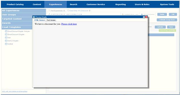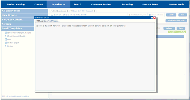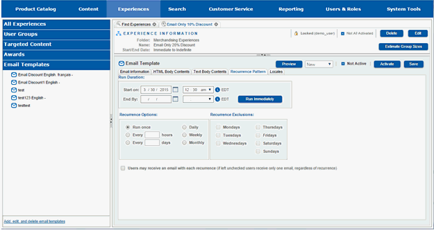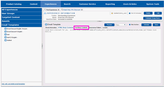 When experiences need the ability to send out emails, they do so through an email template. An email template is a starting point for the final email that is sent. Templates are meant to be customized after they are added to experiences.