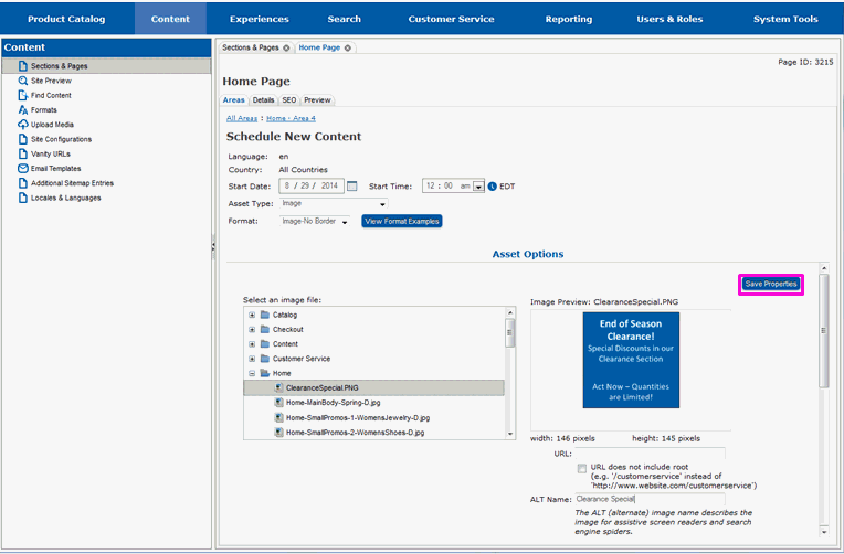 Select Save Properties when all the information for the content has been entered.