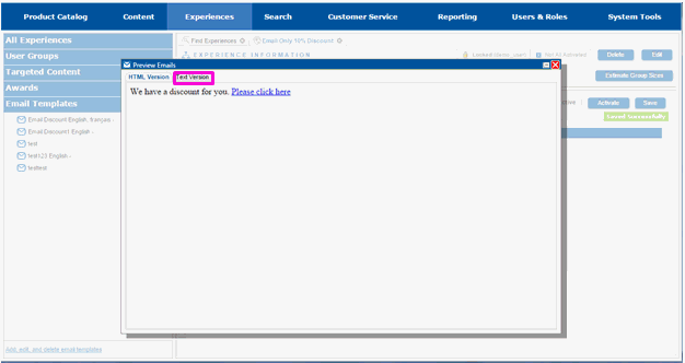 Modify the text version as necessary for your email. Remember that HTML tags are not allowed in the text version.