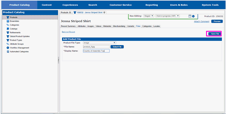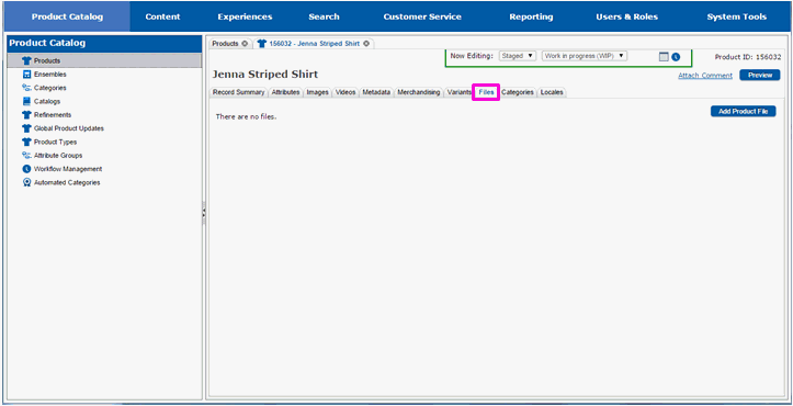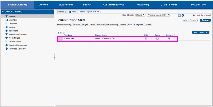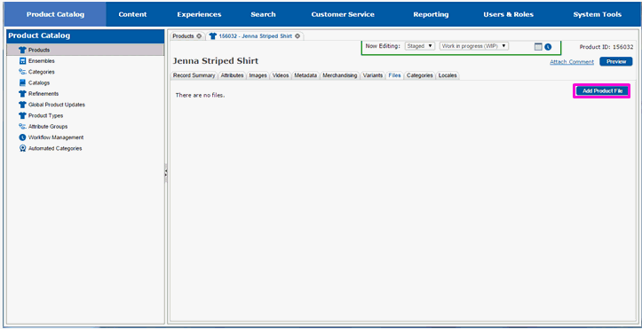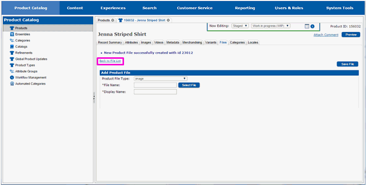 The page will redraw and you will see the main file tab. You will see the file(s) you added in the list of files associated with the product.