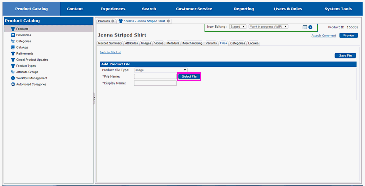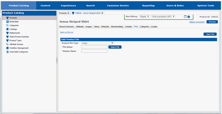 The page will redraw and you will see the page for attaching a file to the product.
