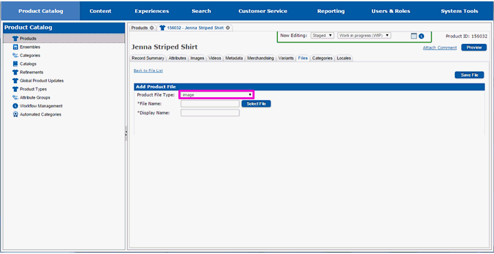 Select the type of file you will be adding in the Product File Type drop-down list.