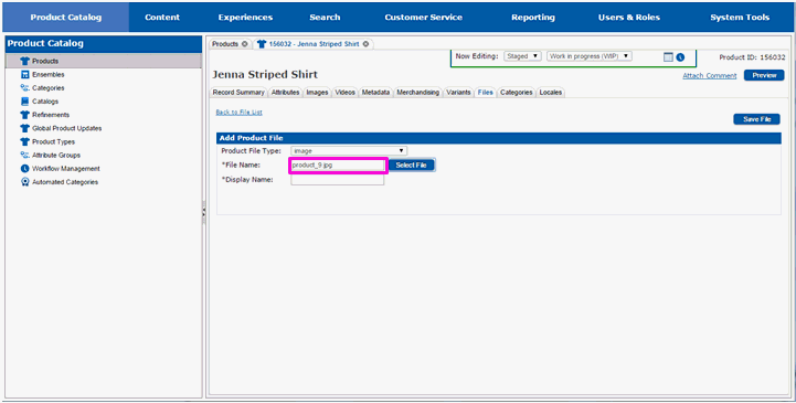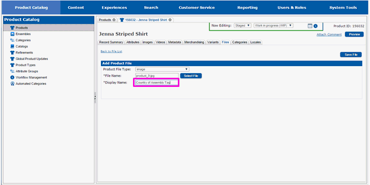 Enter the name that should be used to reference the file on the product's page on the website in the Display Name text field.