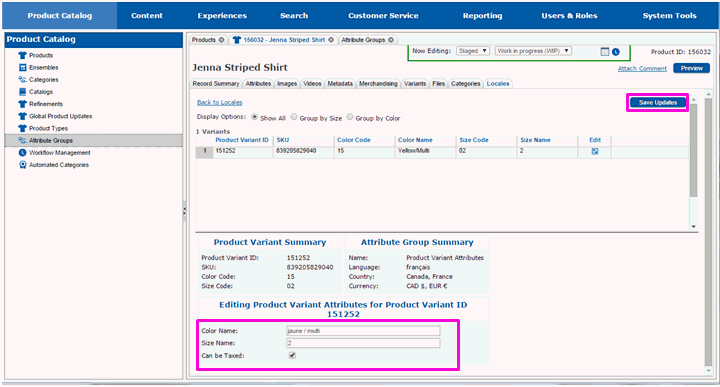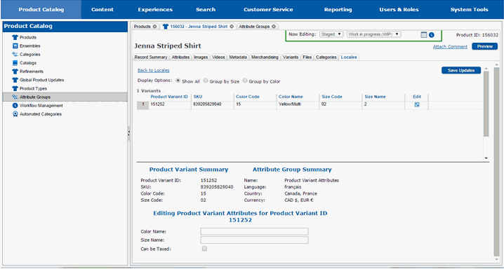 The page will redraw and you will see the variant attributes that can be modified.