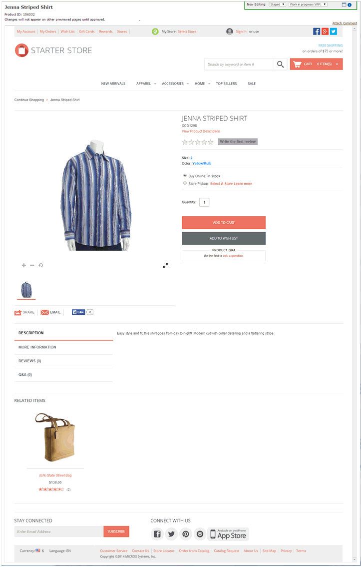 A new window will appear. The window will contain the product's website page, as it would look with the information currently defined for it.