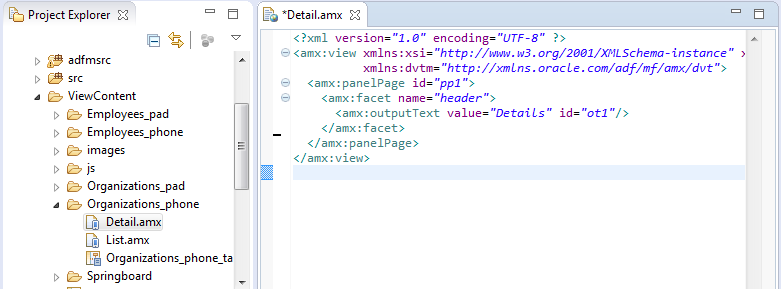 MAF AMXアプリケーション機能のタスク・フローを定義すると、ビュー・ファイルをダブルクリックしてMAF AMXビューにアクセスできます。詳細は、第12.3項「ビューの作成」を参照してください。