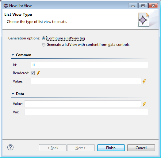 これは、子コンポーネントのあるMAF AMXリスト・ビューを作成するためのオプションを提供します(図12-38を参照)。