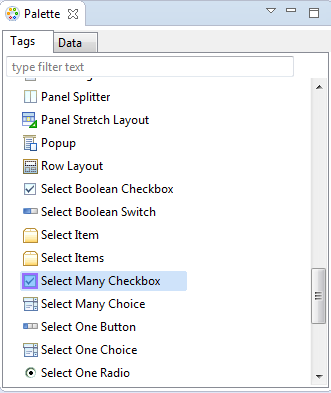 バインディングと実行可能ファイル: このタブでは、バインディング、実行可能ファイルおよび関連付けられたデータ・コントロールの3つの異なるタイプのオブジェクトが表示されます。バインディングと実行可能ファイルは、選択しないかぎりデータ・コントロールには表示されないことに注意してください。