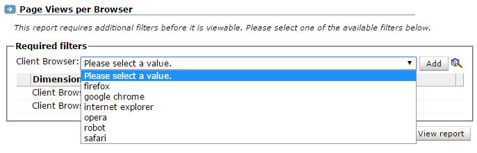 Within each of these groups, sub-groups offer information about a specific aspect of the selected category. More specifically, they offer information across specific dimensions. These dimensions are indicated in the name of the sub-group. For example, within the All sessions group, views are available across the dimensions domain, period, user ID, client browser, language, location, and operating system. This is shown in Figure 3-3.