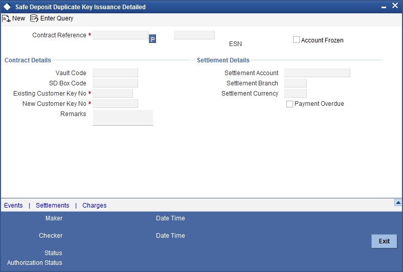 Enter the contract reference number against which you are issuing the duplicate key and click the ‘P’ button.