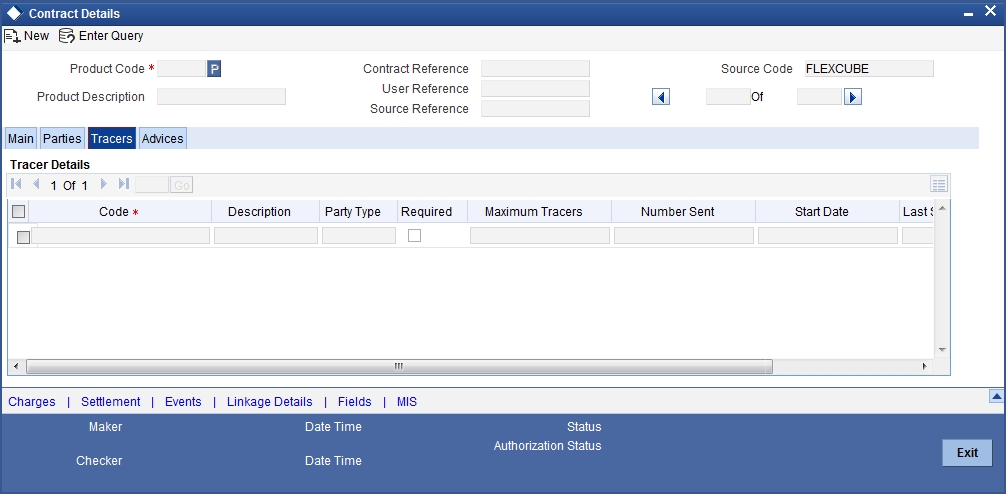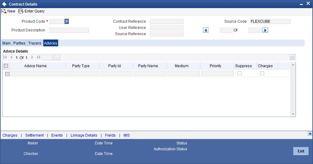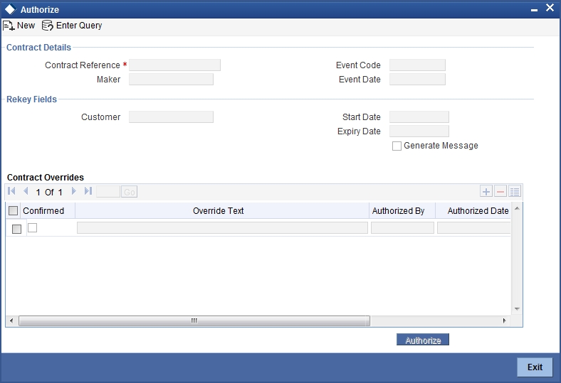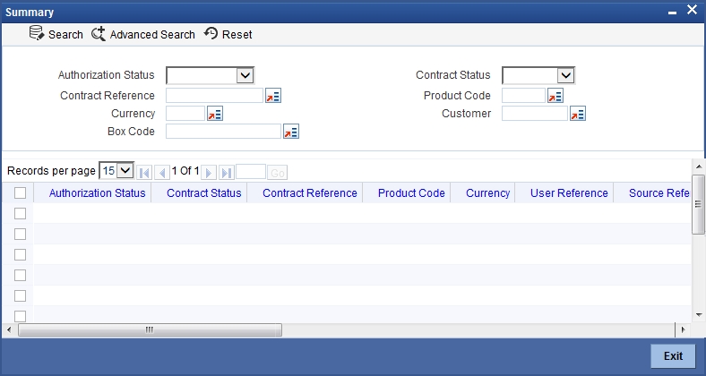 In this screen, enter or select the contract reference number and click on the ‘P’ button adjoining the ‘Contract Reference No.’ The system will populate the following details: