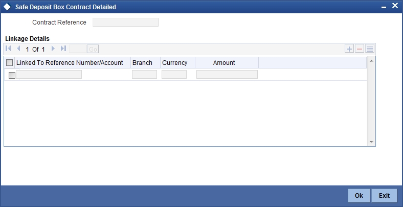 Enter or select from the adjoining option list, the reference number of the contract corresponding to the safe deposit locker that you wish to break open.
