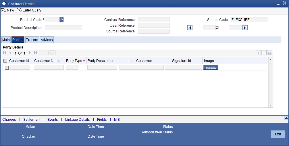 The system will default the party type based on the type of operation selected in the ‘Mode Of Operation’ field.