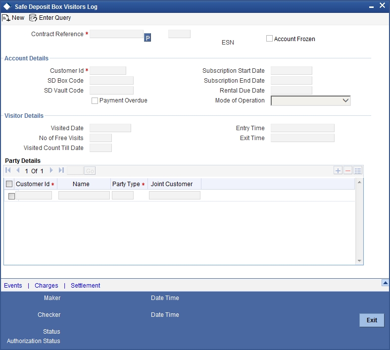 The system displays the party type and will validate the visit to the deposit locker based on the ‘Mode of Operation’ you have selected for the contract.