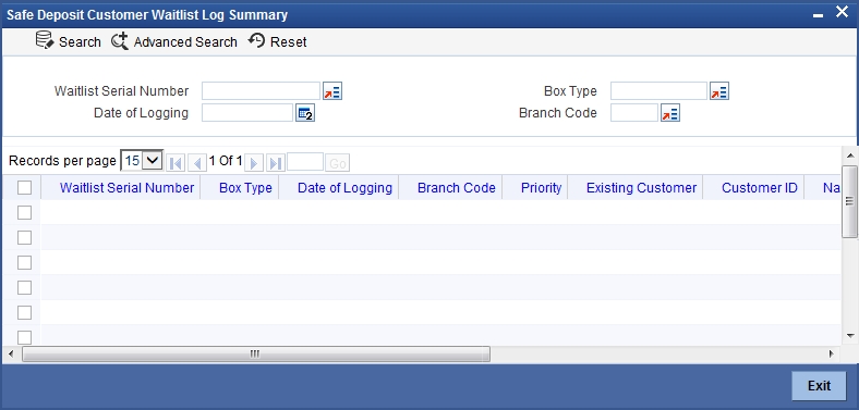 After specifying the parameters for the query, click ‘Search’. The system displays all the records matching the parameters specified. If you do not specify any parameter for the query before clicking ‘Search’, the system will display all the available records for waitlisted customers.