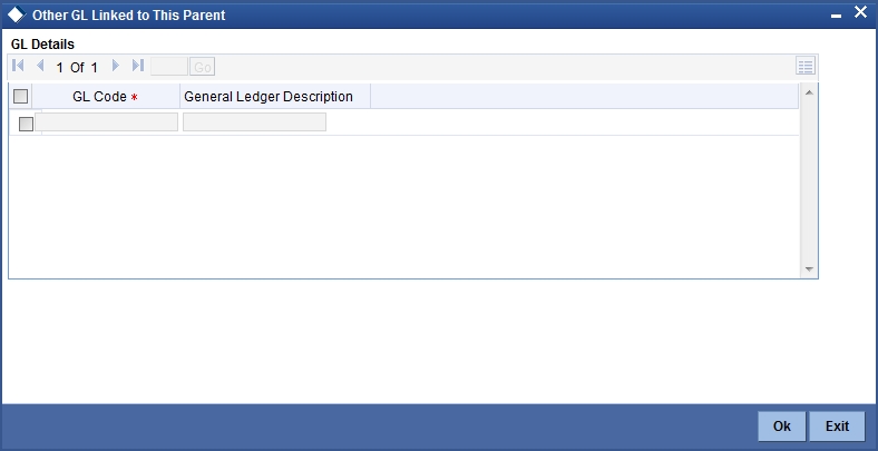 In Oracle FLEXCUBE, a GL is identified by a Code. The length and composition of the code depends upon the GL Mask defined in the ‘Bank-wide Parameters’ Screen. The code that you enter can have a maximum of nine alphanumeric characters.