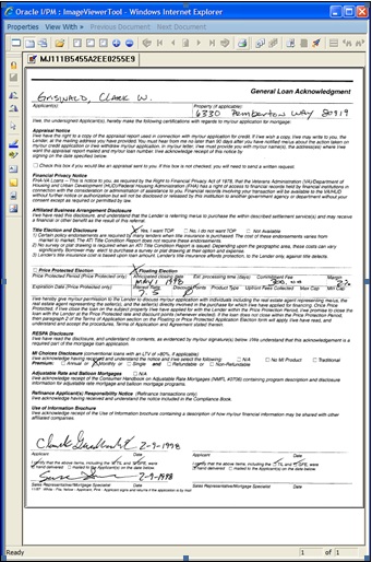 If Oracle IPM is your DMS, you must login to Oracle IPM and you can view the document in the ‘Oracle IPM: ImageViewerTool’ screen.