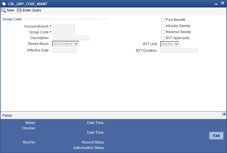 You can invoke the ‘Integrated Liquidity Management Group Code Maintenance’ screen by typing ‘ILDGRPCD’ in the field at the top right corner of the Application tool bar and clicking on the adjoining arrow button.