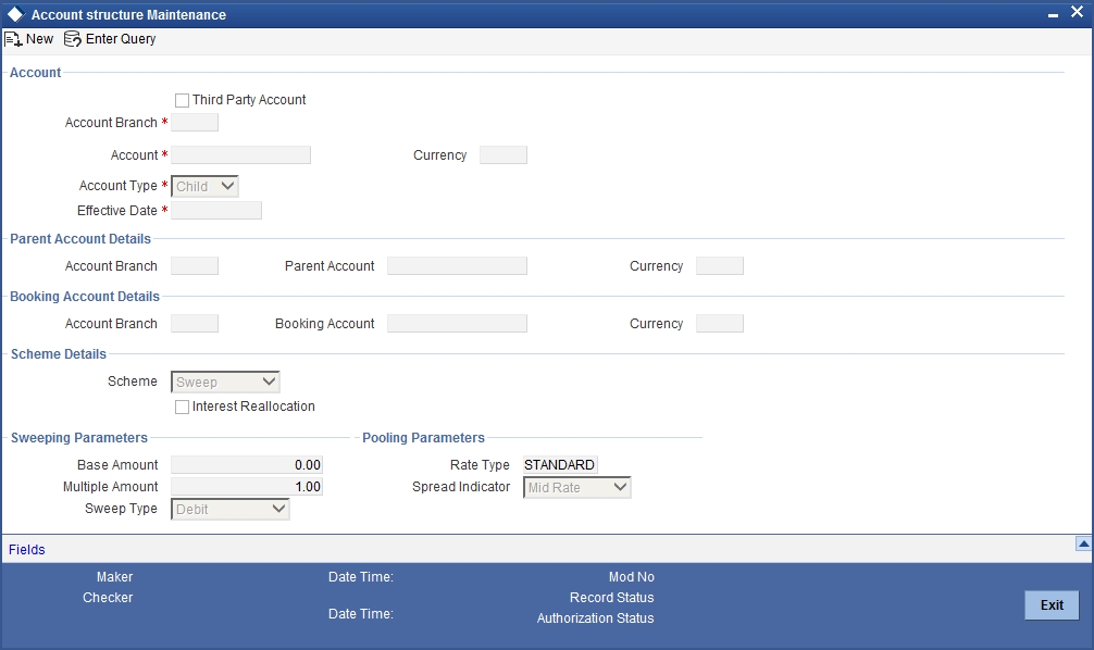 You need to define the account structure and the hierarchy for ILM processing in the ‘Account Structure Maintenance’ screen. You can invoke the ‘Account Structure Maintenance’ screen by typing ‘ILDSWEEP’ in the field at the top right corner of the Application tool bar and clicking on the adjoining arrow button.