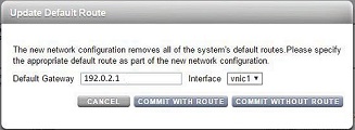 La passerelle par défaut est l'adresse IP du routeur par défaut. Pour l'interface, sélectionnez la liaison de données que vous avez affectée à la première interface de gestion.