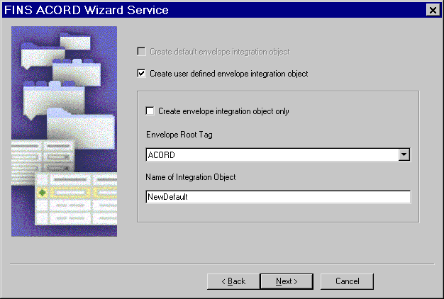 Siebel Financial Services Connector for ACORD P&C and Surety Guide > Configuration Roadmap > Creating Integration Objects in Siebel Tools > Creating an Envelope Integration ObjectAn envelope integration object provides the envelope and header information needed by the ACORD XML hierarchy. The following procedure shows how to create an envelope integration object that works with external and internal integration objects. Note that the wizard provides the option of creating an envelope integration object that stands alone, which can be used for authentication. The example provides the steps for creating a user-defined envelope, which allows you to create a customized authentication mechanism. You can also create a default envelope from the wizard. The default envelope provides the user name, password, and session key authentication mechanism that conforms to the ACORD standard. To create an envelope integration object