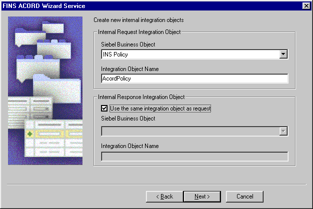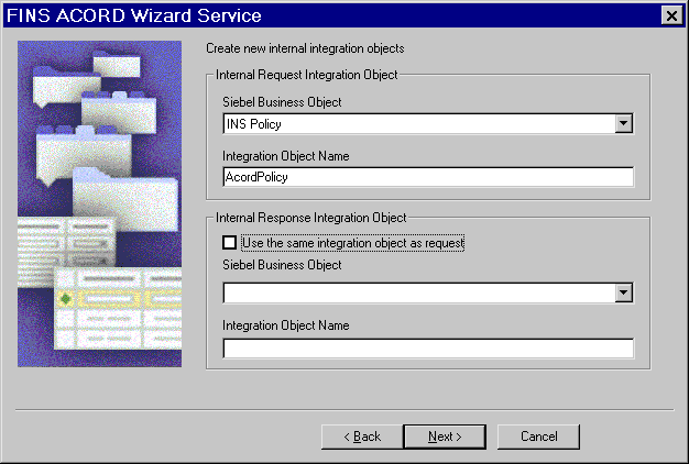 This example uses the FINS ACORD Wizard to create a new internal integration object, as shown in the following procedure.