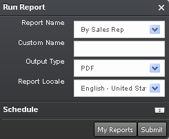 Siebel Reports Guide > Overview of Siebel Reports > About Siebel Reports > How Users Run ReportsTo run a report, the user typically navigates to a view, runs a query, clicks the Report button in the application toolbar, and then chooses a report to run. The user can run the report immediately or schedule it to run at a later time. The user can monitor the report while it runs, view prior reports, or delete prior reports. For more information about running a report, see Running Reports. Run Report Pane in Siebel Open UIFigure 1 includes the Run Report pane that Siebel Open UI displays in the client. It anchors this pane on the left side of a view. It remains open while you navigate through the client. How Siebel CRM Displays Reports According to the ViewThe reports that Siebel CRM displays in the Report Name list of the Run Report pane depends on the view that the client currently displays. For example, if the client currently displays: