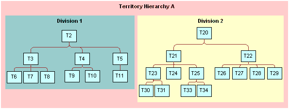 Siebel Territory Management Guide > Setting Up Siebel Territory Management > About Territory Hierarchies and DivisionsA hierarchy is a group of territories and of sales forces (or in Siebel CRM terminology, divisions). Figure 1 shows an example of a hierarchy with two divisions. Depending on your business needs, you might choose to have one division in your territory hierarchy or multiple divisions in the territory hierarchy. For large hierarchies, it might be better to set up several divisions. This option gives you more flexibility when running territory alignments. With multiple divisions, you can run an alignment for a whole territory hierarchy or for just one division at a time within a territory hierarchy. Figure 1 shows a territory hierarchy made up of two divisions. Position Reporting Structure and Territory HierarchyUsually, but not necessarily, the position reporting structure in the division matches the territory hierarchy. That is, primary employees who are assigned to child territories usually report to the manager who is the primary for the parent territory. For example, referring to Figure 1, if territory 6 is the child of territory 3, the sales representative assigned to territory 6 reports to the sales manager who is assigned to territory 3. However, this need not be the case. For example, the sales representative for territory 8 leaves the company. You assign territory 8 to the sales representative for territory 10. This sales representative now has two territories and continues to report to the sales manager for territory 4 (not the sales manager for territory 3). There is a feature in Siebel Territory Management that you can use to automatically reassign the reporting structure so that it parallels your territory hierarchy. The reporting structure can be updated territory-by-territory or for a whole hierarchy at time. One Territory in Multiple HierarchiesYou can include one territory in multiple hierarchies. For example, Territory 1 can belong to both Hierarchy 1 and Hierarchy 2. One hierarchy must be the primary hierarchy for the territory. This feature allows you to can create alignments of the same territories that are based on different hierarchies. For example, you can define Alignment 1 for Hierarchy 1 and define Alignment 2 for Hierarchy 2, with Territory 1 belonging to both Hierarchy 1 and Hierarchy 2. This makes it possible to create hierarchies that organize your territories in several different ways, and to run alignments for all of these hierarchies, to see how the different hierarchies affect the assignment. For example, you could set up multiple hierarchies to test how quotas would change if you reduce the number of nodes at an intermediate level of the hierarchy. Only the alignment for the primary hierarchy can be activated. When you activate a hierarchy, Siebel Territory Management checks to see that all the territories in the hierarchy have this hierarchy as their primary hierarchy. If they do not, Siebel Territory Management does not let you activate the hierarchy. The other hierarchies are used to simulate other results. You must run major alignments on all hierarchies except for the primary hierarchy. You can run minor and intermediate alignments only on the primary hierarchy. Running a major alignment on a nonprimary hierarchy shows the complete result set for that nonprimary hierarchy, but it does not show changes relative to existing assignments for territories in the primary hierarchy. You might need to compare this result set with existing assignments to identify delta changes. After you have run alignments for the nonprimary hierarchies, and you have seen which gives you the best results, then you should make the appropriate changes in the primary hierarchy, so you can run and activate the primary hierarchy. For more information about hierarchies, see Tasks for Working with Territory Hierarchies. |