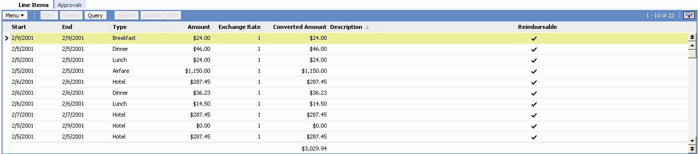 Siebel Developer's Reference > Siebel Templates for Employee Applications > List Templates > Totals List Template for Base or Edit List ModeThe Applet List Totals (Base/EditList) template uses the CCAppletListTotals_B_EL.swt file. You can map up to 40 fields in this template. For more information about configuring these fields, see Configuring How Siebel CRM Uses the Columns Displayed Feature. This template supports the parent, child, and grandchild styles. Figure 23 includes the generic layout that this template uses. Figure 24 illustrates how you can use this template for a read-only or editable list that displays column totals in the last row. You must make sure you apply a Totals label to the placeholder in the first column. This template uses the following structure: Table 50 lists the items that Siebel CRM can map for this template. For more information, see About Mapping IDs to Placeholders. |
