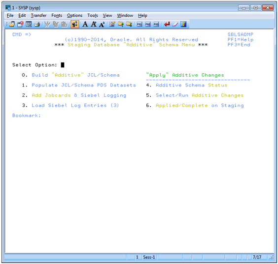 - Select option 0: Build Additive JCL/Schema, and press Enter,