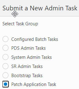 From Online Admin Tools > Submit a New Task, select Patch Application Task, as shown in Figure 3-7, and click Next.