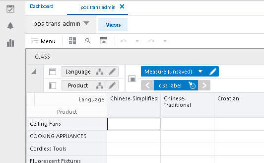 The Measure Translations view allows the user to view and edit the translations of measure labels, measure descriptions, and measure picklists.