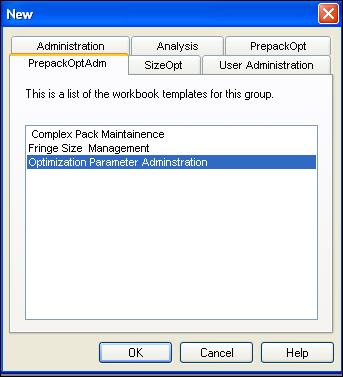On the PrepackOptAdm tab, select Optimization Parameter Administration and click OK.