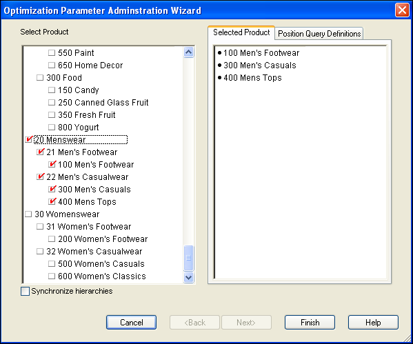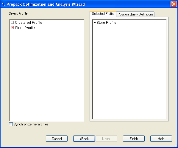 The Select Product screen appears. Select the items for which the results of prepack optimization in batch need to be analyzed and click Finish.
