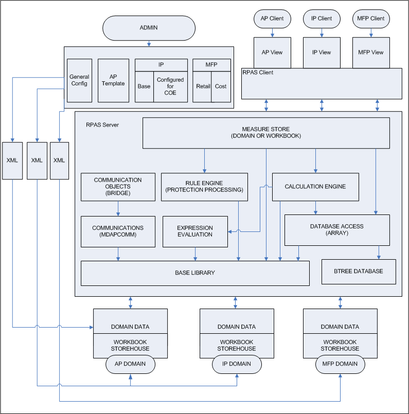 Figure 1-2 shows the architecture of the Oracle Retail Predictive Application Server (RPAS) template applications.