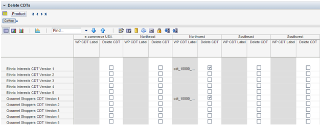 Use this view to delete CDTs. There are five slots available for each consumer segment to upload five versions of CDTs. This view facilitates the maintenance of appropriate CDTs for a consumer segment. It provides a feature to delete a CDT version to free up available slots. This in effect, facilitates maintaining appropriate CDTs in the application per the business requirements.