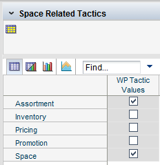 Use the Space Related Tactics view to set the default space tactics options. These default space tactics then appear as the drop-down selection options in the Assign Tactics view.