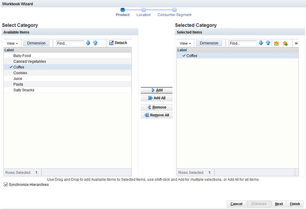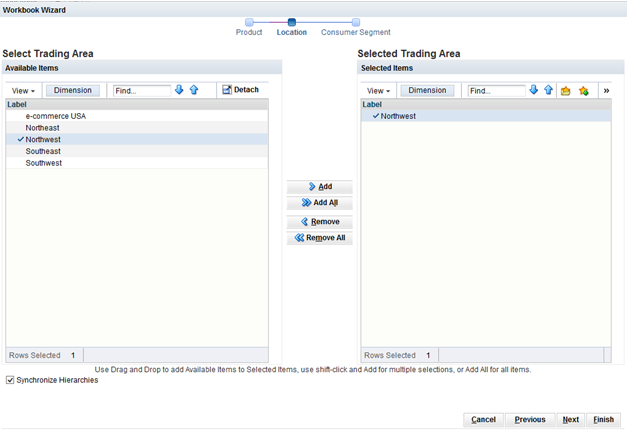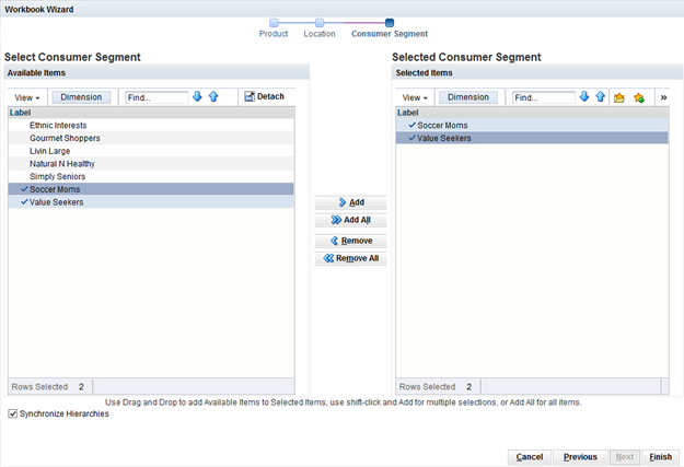 Select the consumer segments and move them to the Selected Items box. Click Finish.