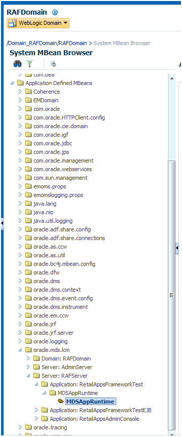 Click MDSAppRuntime management bean (MBean).