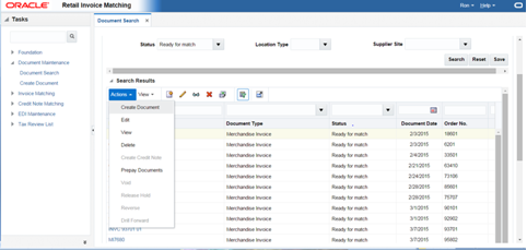 A Merchandise document with a ready for match status can be pre paid before matching. The Document Search screen provides this option.
