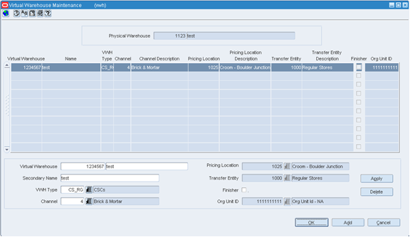The organizational unit is found in the Store Maintenance and Warehouse forms, which allow the Oracle E-Business Suite operating unit to be associated with the Store or Warehouse.