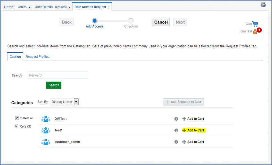 Click the Add to Cart button next to the role you want to assign.