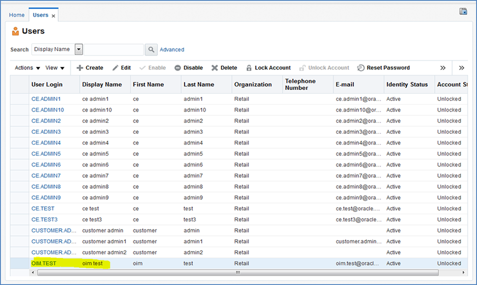 Before users can access the Oracle Retail Merchandising Cloud Services applications it is necessary to provision each user access to the system, and assign roles to each user to control what functionality will be available to them. The access provisioning is done using Oracle Identity Management (OIM). The following steps explain how to define users, assign roles and revoke access for users when needed. The OIM Application URL and the login with the required administrator access would be needed to execute the below steps: