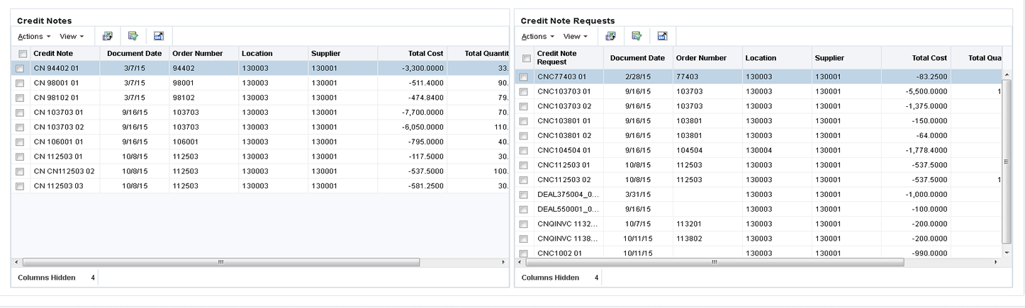 | Document Status | Document Hold Status | Holding Supplier | Credit Notes | Credit Note Requests |
