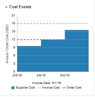 Invoice Date: The Invoice date is listed and plotted on the graph using a tic mark. If the invoice date is outside of the cost changes listed (before first or after last), the tic mark will be right outside of the graph so it will not impact the scale of the graph.