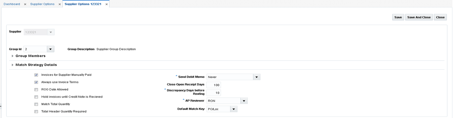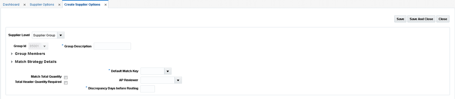 Table 7-10 Supplier Options Search Fields