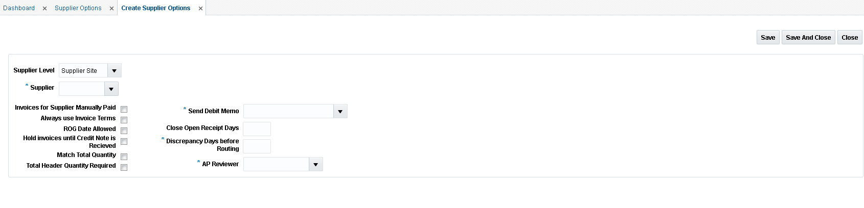 Once you have completed your system options updates, click Save and Close. If you want to save changes but continue to make additional changes, click Save.