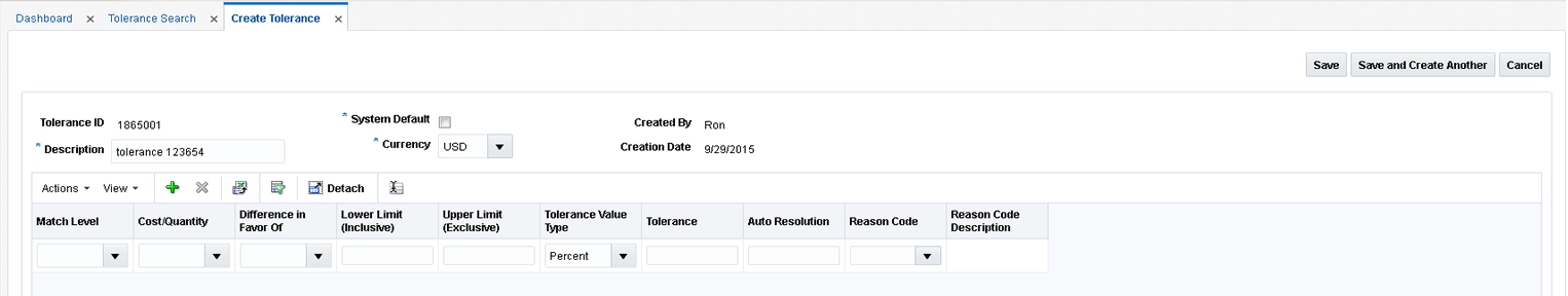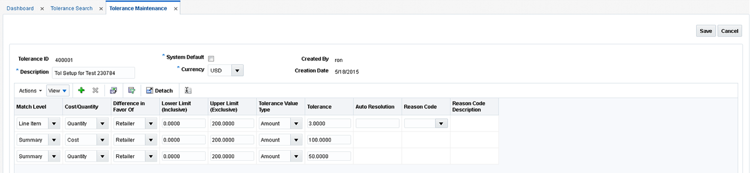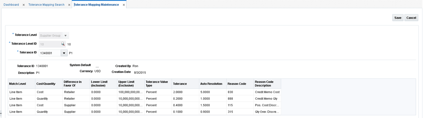 Using the Reason Code Maintenance window, you can set up and maintain reason codes. Reason codes are used to resolve discrepancies between receipts and invoices. A discrepancy originates when the price or quantity variance exceeds acceptable tolerance levels. After you create the reason code, you must associate it with an action that helps you resolve the discrepancies.