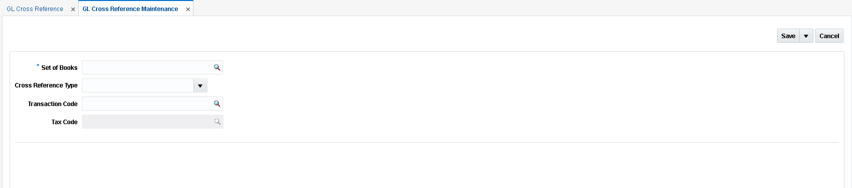 In the Tax Code field, enter the tax code associated with the GL cross reference.