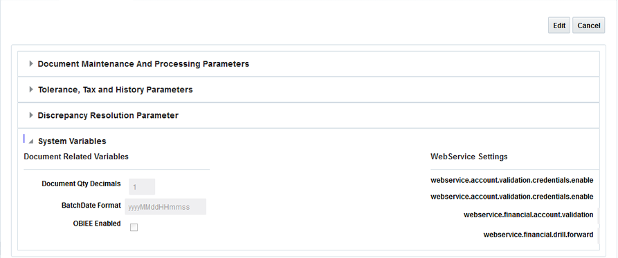 Table 7-1 Document Maintenance And Processing Parameters System Options